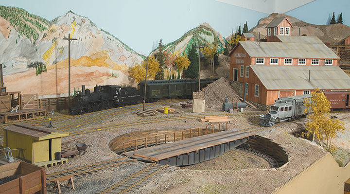 On the prototype Rio Grande Southern, Telluride was the end of the branch line. I have Vance Junction on my layout, but quietly eliminated the branch. My Vance Junction scene has a spur track going around a hill and ending at a mirror, and I hope nobody asks about Telluride. And yet, my imagination has often configured the Telluride scene that I would have built if there had been room. Well what the heck, I decided to build it and promptly get rid of it. This project didn’t take very much time away from my RGS permanent layout and its on-going improvements. Just for fun, I kept a time log. At the end of the project, I found I had worked on Telluride for 208 hours all in the month of October. That’s more than 50 hours per week every week for a month. Such model railroading intensity is fun for me. It’s what you might call a compelling hobby! Telluride’s materials cost $915. Telluride is the second project this year in which I have taken a “vacation” from my HOn3 RGS layout. The other off-layout project was Da Yooper Mine, presented in the July/August and September/October issues of the GAZETTE.