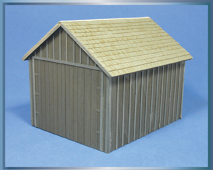An appealing aspect of O scale buildings, even true for the relatively small shed example of this article, is the ample surface area to add a variety of weathering detail and texture. This article illustrates using several #2 paint brushes, a #11 hobby knife blade, needle, and 220 grit sandpaper to finish and weather board-and-batten wood siding and a slate roof.