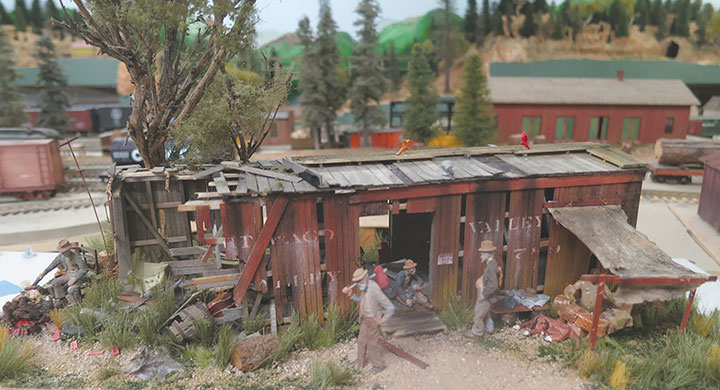 The author installed his Hobo Haven in a spot on his layout just outside Tuolumne, close to the tracks where the hobos could catch a train.